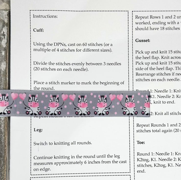 This single marker is used with a pattern or book by wrapping around the page and then used by sliding the marker up and down the page. The marker can also be left in place on your pattern, ready for your next knitting or crochet time.