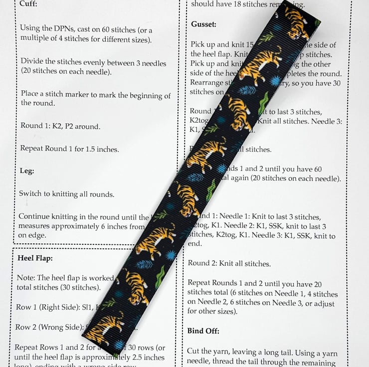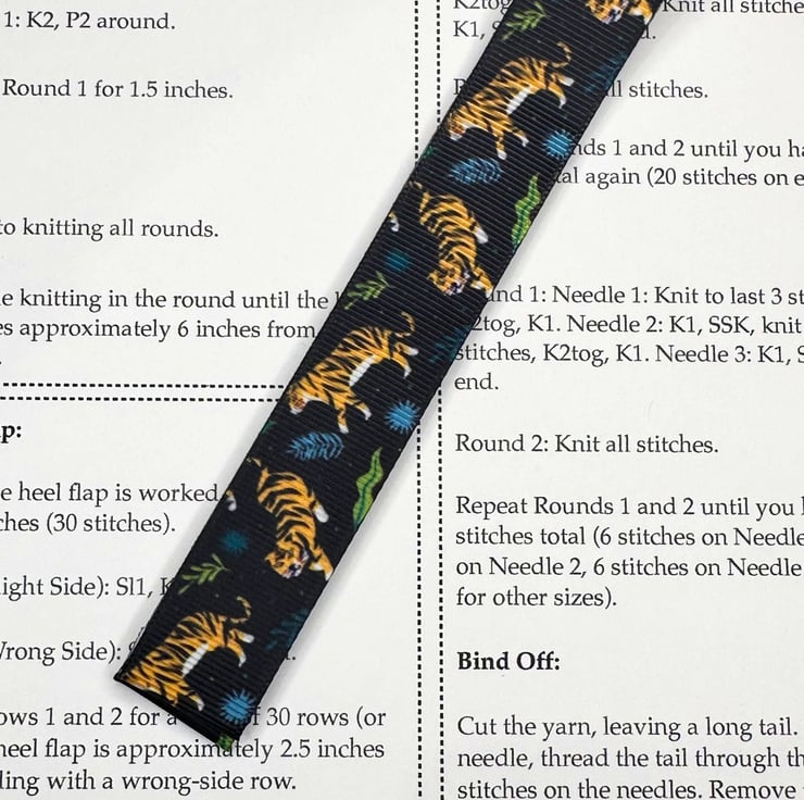 Single magnetic pattern marker guide, for keeping your place on an A4legal paper pattern. Ideal for following knitting, crochet, embroidery patterns and grids. With a tiger pattern ribbon - ribbon width 22mm.