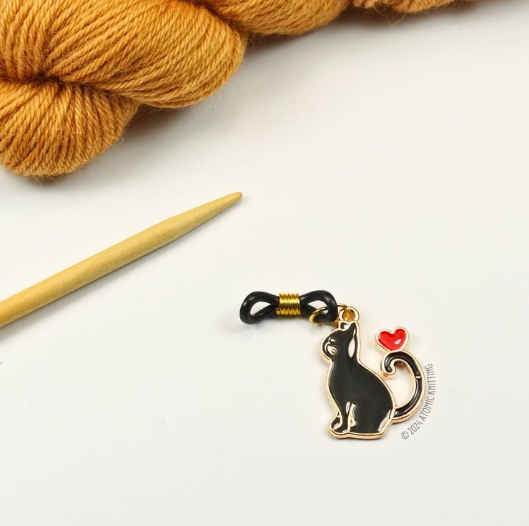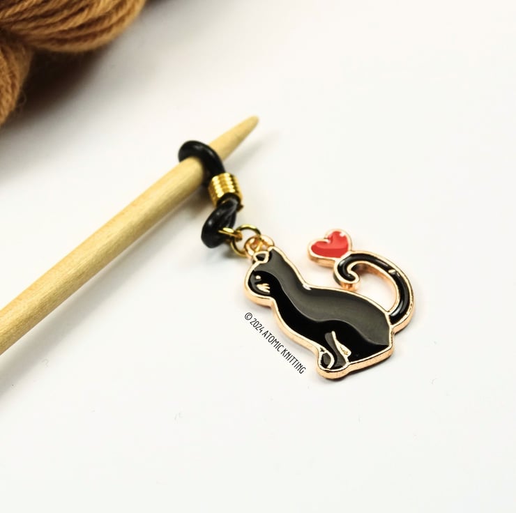 Each holder features a single-sided enamel charm, adding a touch of Atomic Knitting's signature style to your knitting tools. Elevate your knitting experience with this subtle yet charming detail.