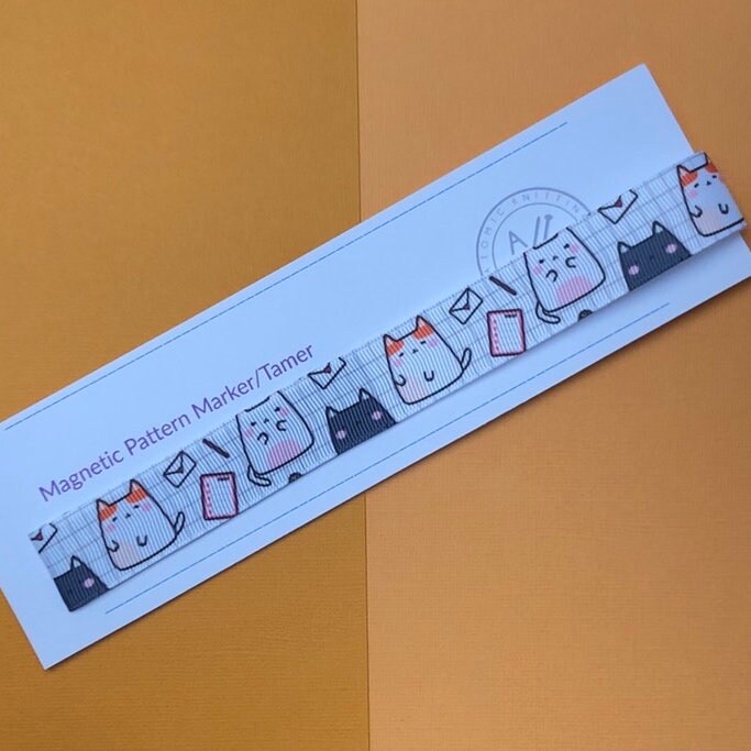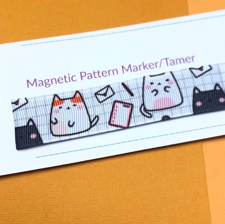 Single magnetic pattern marker, for keeping your place in a pattern. With a cat design pattern ribbon - ribbon width 22mm