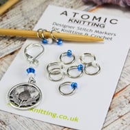 High quality stitch markers for knitting, row counter chains, knitting cords & stoppers, magnetic pattern marker guides, cardigan clips & useful tools for knitting & crochet.