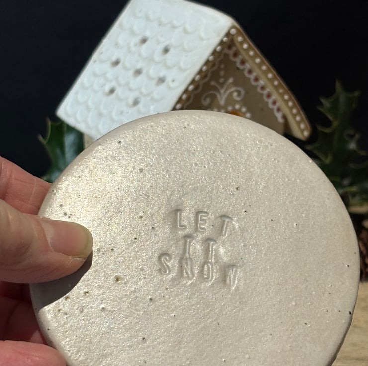 A custom made ‘LET IT SNOW’ coaster is included to protect your surfaces if real tea-light candles are used (a safe battery operated twinkling tea-light is included with purchase).