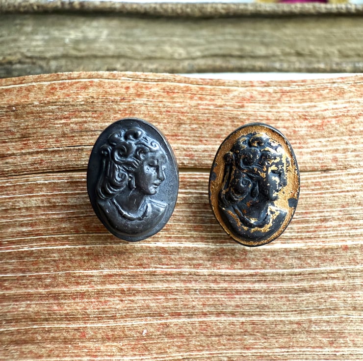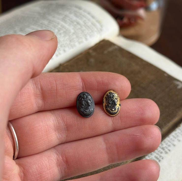 A unique pair of recycled silver cameo stud earrings. Cast from original antique shell cameos of a lady..