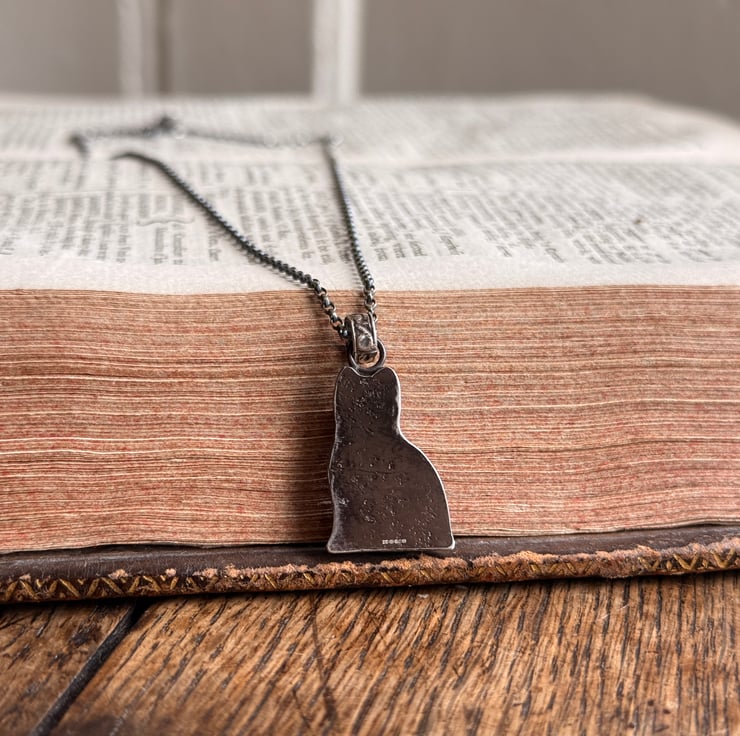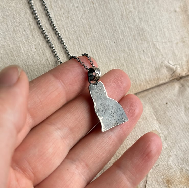 The necklace has been oxidised and rubbed back, enhancing the highlights for an antique look.