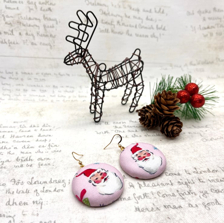 For these fun and colourful earrings, I've created two 3.8cm flat back buttons featuring Father Christmas himself, who has a red hat and rosy cheeks!
