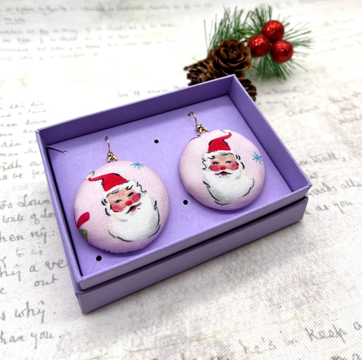 These earrings will come to you safe and carefully packaged in a UK Made eco-friendly recycled lilac kraft card jewellery box - perfect for gifting to a friend who loves Christmas jewellery, loves retro jewellery or a treat for yourself!