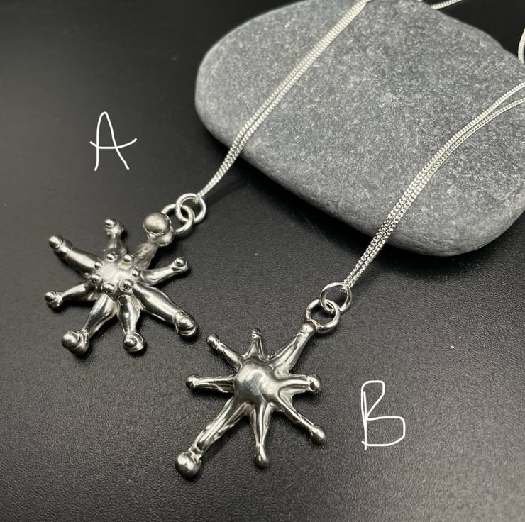 I crafted these in jewellers wax and they were then cast in sterling silver. Perfect for layering with other pendants and necklaces.