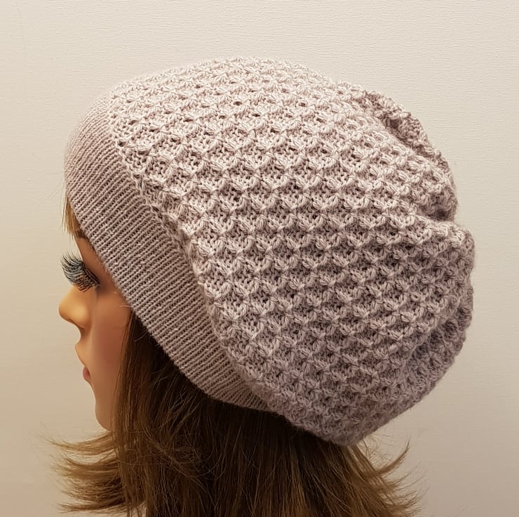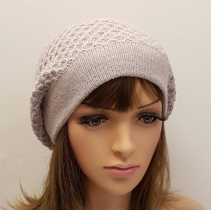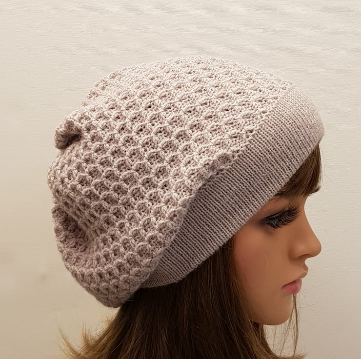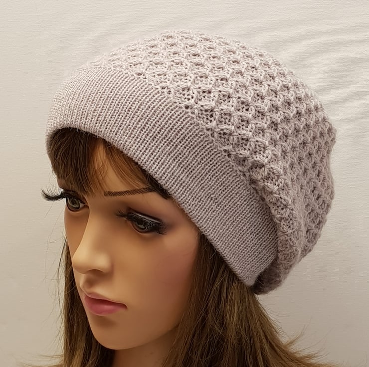Alpaca beret for women, knitted baggy beanie, elegant tam.