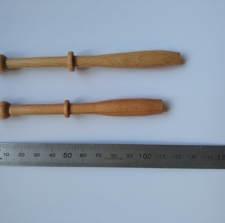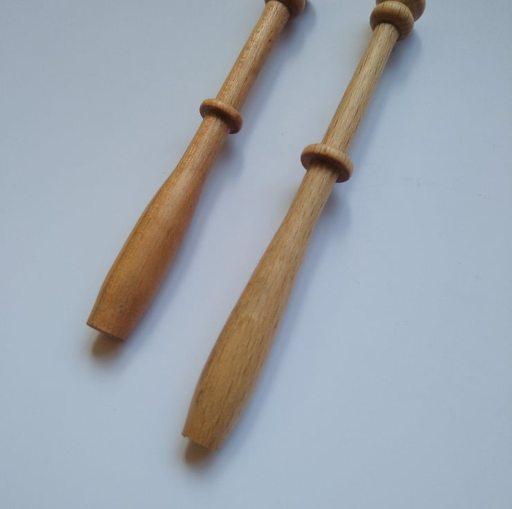 Ten (5 pairs) of handmade to order Gimp Lace Bobbins. These bobbins are larger than a normal lace bobbin for use with the thicker gimp thread. The handle is smooth and ergonomically designed to be comfortable to use.