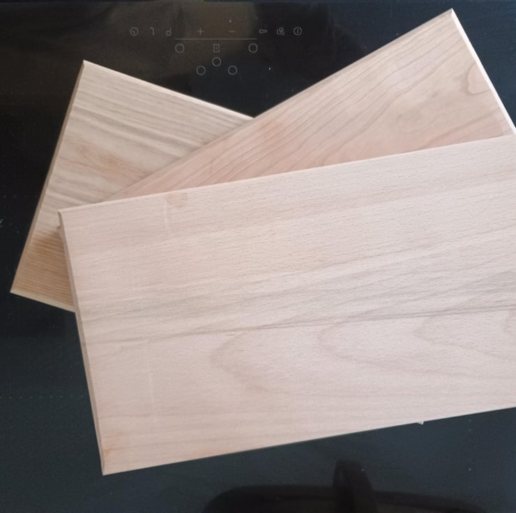 Solid hardwood - my ideal chopping board is made from a single piece of solid hardwood - Beech, Ash or Cherry - each with their own beautiful colour and grain pattern.