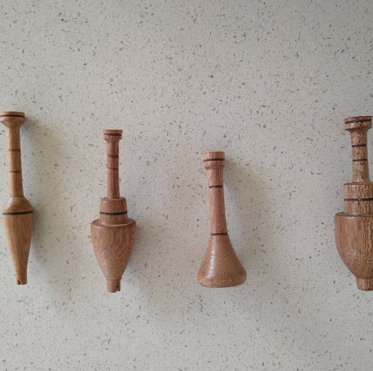 Trumpet Cones are available in Cherry, Beech & Maple. Other woods may be available, please send me a message if you are interested in something else. On the photo, Cherry is on the left, Beech in the middle and Maple on the right.