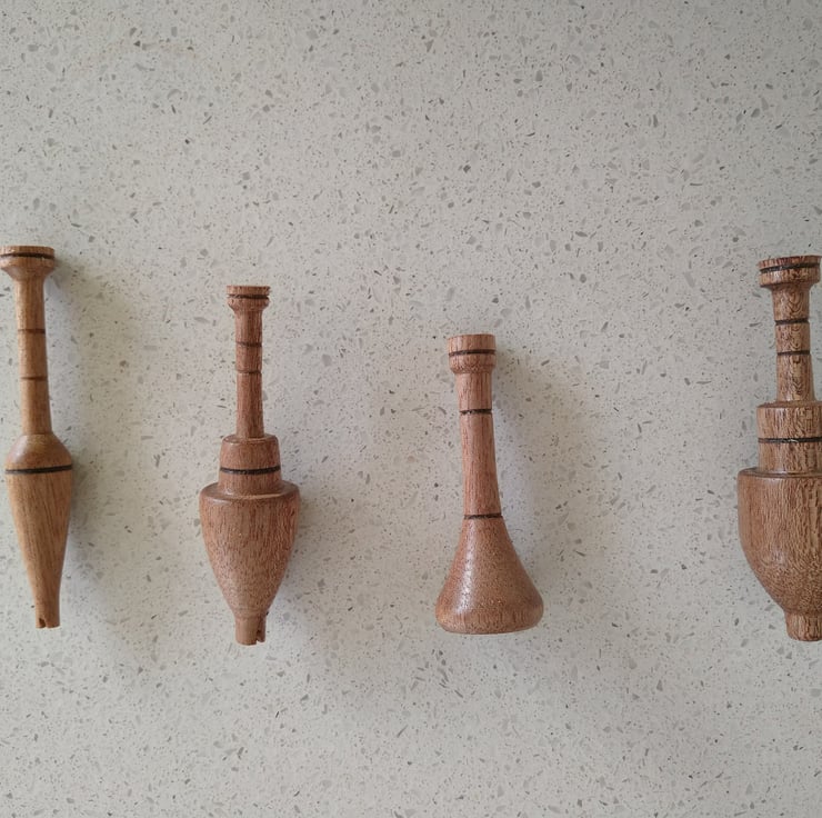 A complete bundle of all my most popular tools for Hedebo and needlepoint embroidery. This bundle contains a large and a small Hedebo gauge, a set of 5 half cone sticks, a set of 5 full cone sticks and one each of my 4 main designs of Trumpet Cones. 10% discount on individual prices when you buy as a bundle. On the photo, Cherry is on the left, Beech in the middle and Maple on the right.