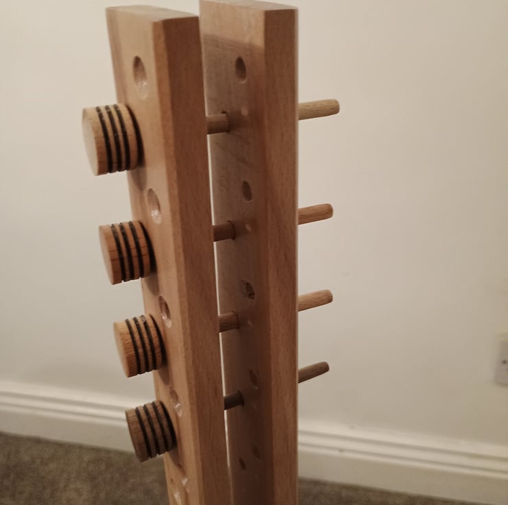 Available in the following hardwoods - Beech, Cherry, Maple & Walnut - and finished with a layer of lacquer and my beeswax blend polish. These pegs are designed to add an extra degree of beauty to a functional item.