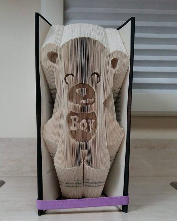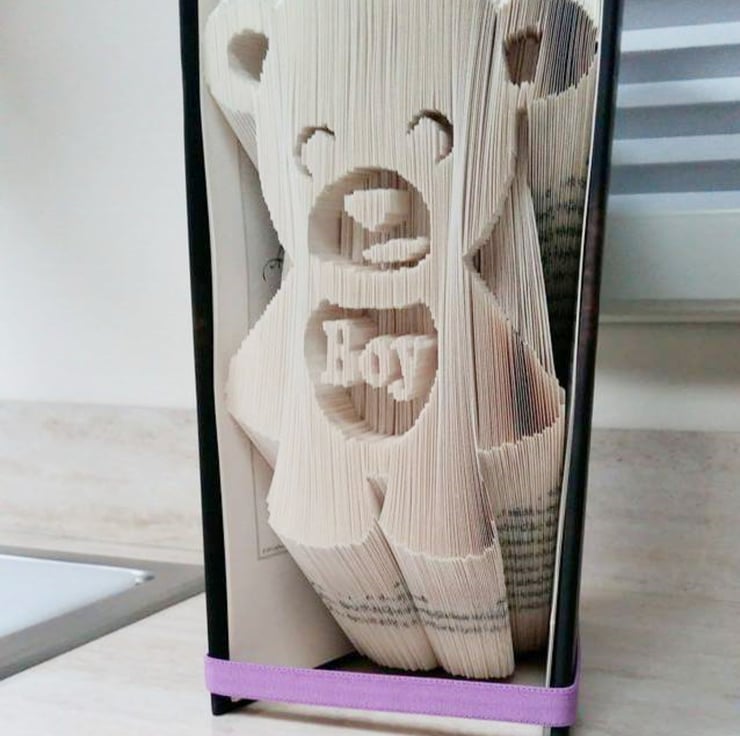 This listing is for a book folding pattern that enables you to create a book with the design pictured. Main image shows the cut & fold version and the remaining ones show the same pattern folded as a combi. Two different effect using the same pattern! Girl bear also available. A free written tutorial is included to guide you through the folding process.