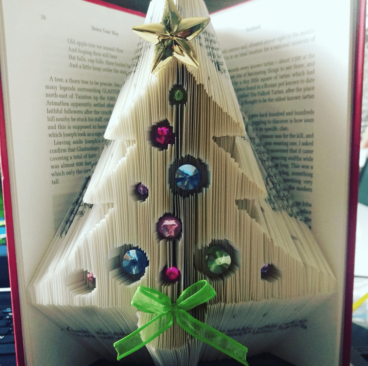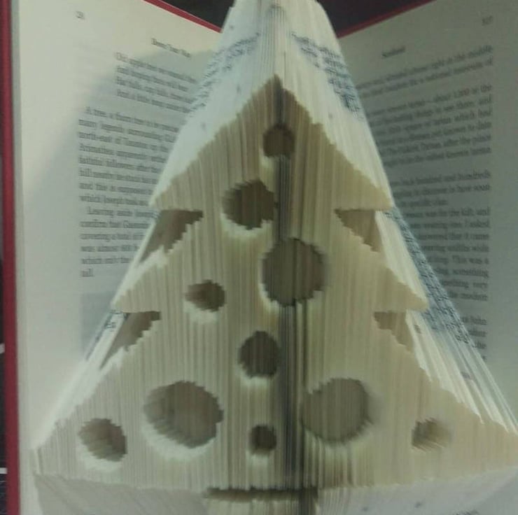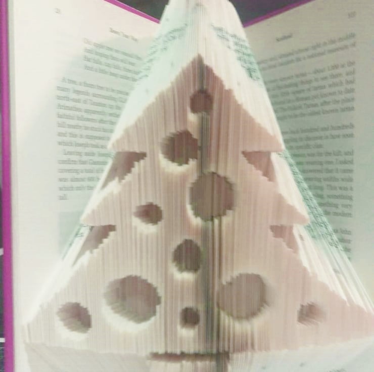 This listing is for a book folding pattern that enables you to create a book with the design pictured. The main image shows the pattern after it has been decorated. (decorations not included) A free written tutorial is included to guide you through the folding process.
