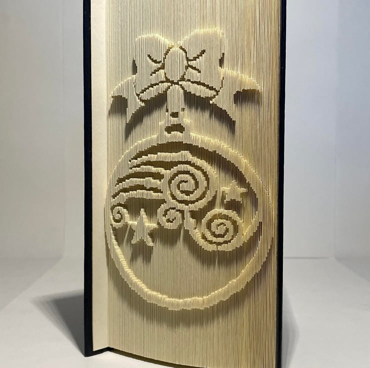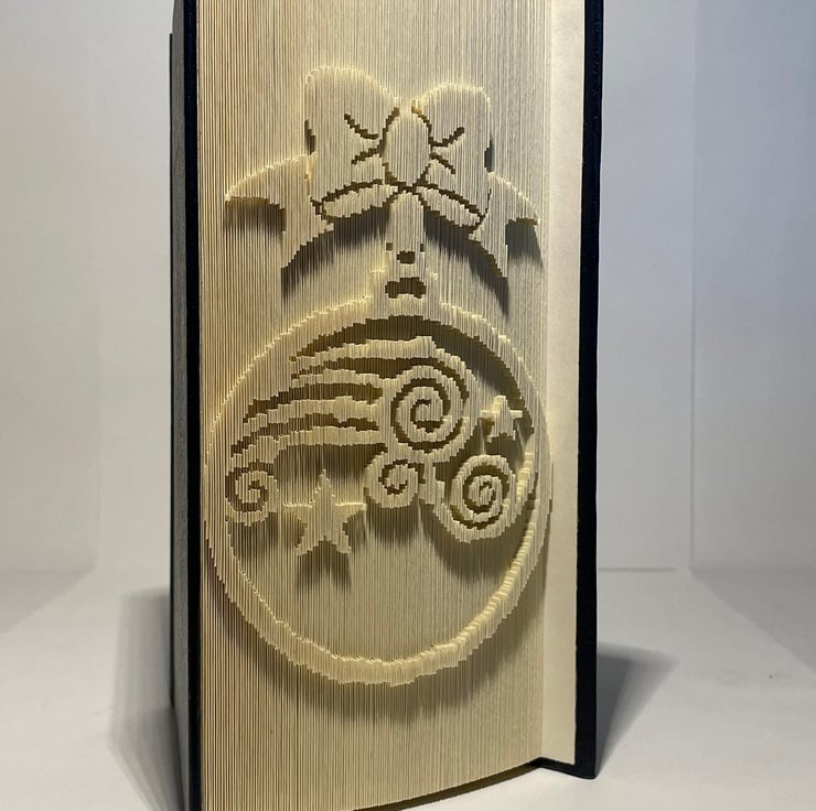 This listing is for a book folding pattern that enables you to create a book with the design pictured. A free written tutorial is included to guide you through the folding process.