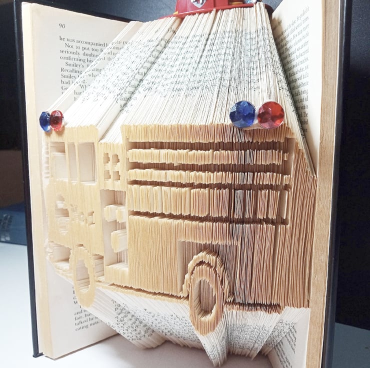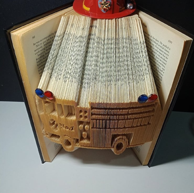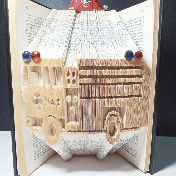 This listing is for a book folding pattern that enables you to create a book with the design pictured. The images show the book after it has been decorated (decorations not included) A free written tutorial is included to guide you through the folding process.
