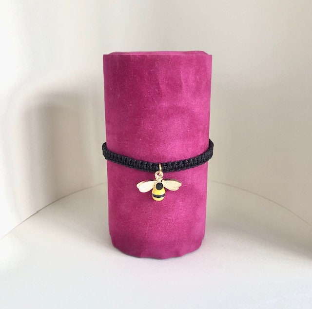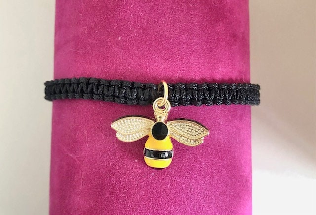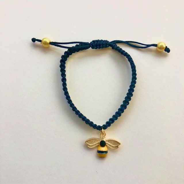 Macrame friendship bracelet with bee charm and hand painted wood beads.