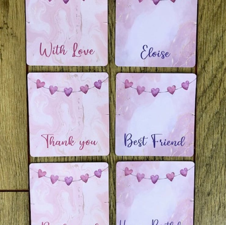 The bracelet comes displayed on a backing card which can be personalised. For example, you can have a name or it can say best friend. You can chose if you want the pink text design or the purple one.