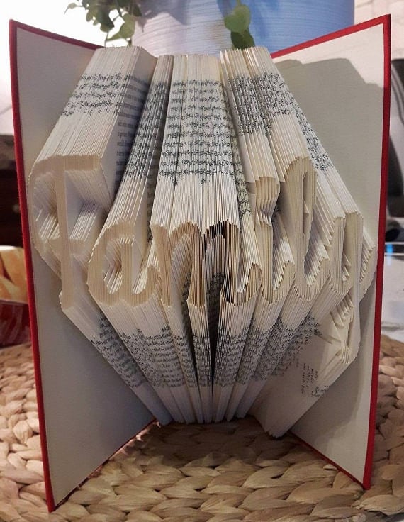 This listing is for a book folding pattern that enables you to create a book with the design pictured. A free written tutorial is included to guide you through the folding process.