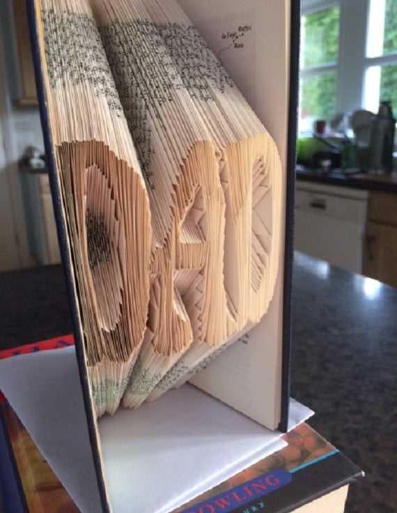 This listing is for a book folding pattern that enables you to create a book with the design pictured. A free written tutorial is included to guide you through the folding process.