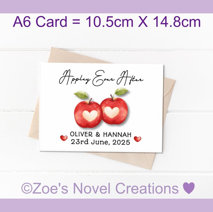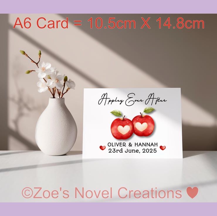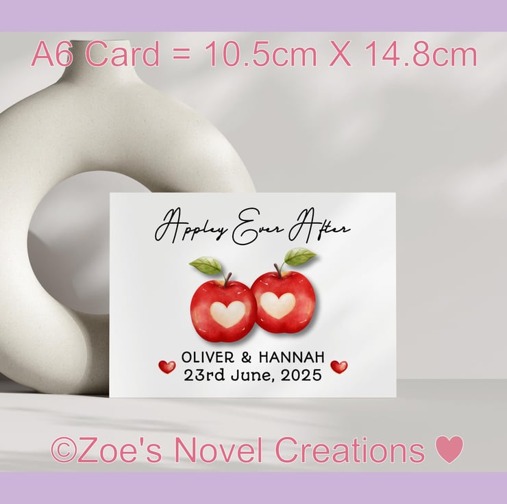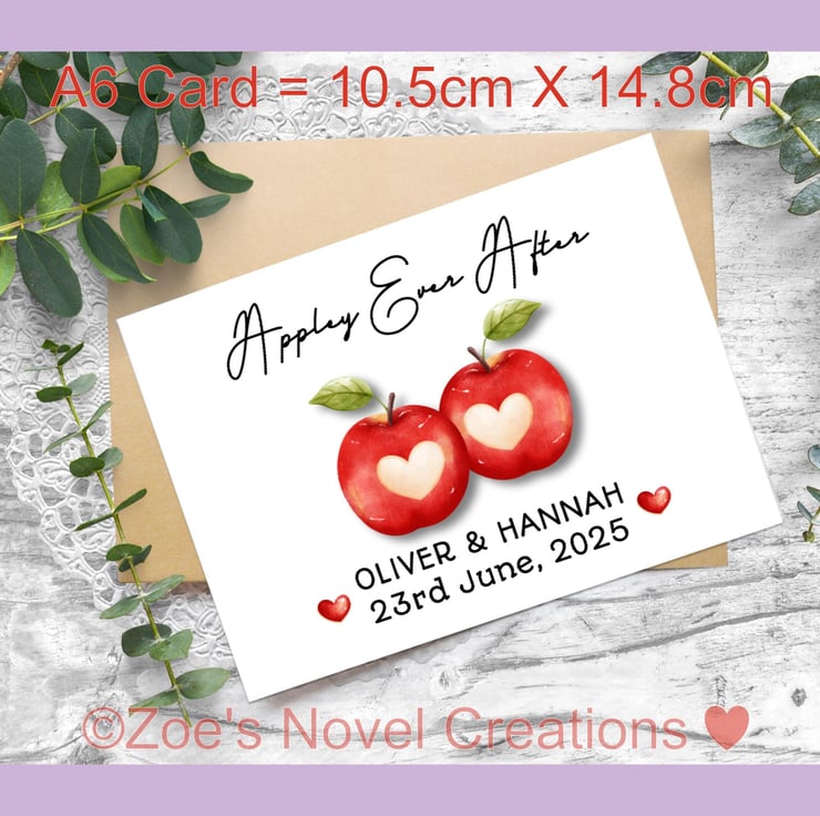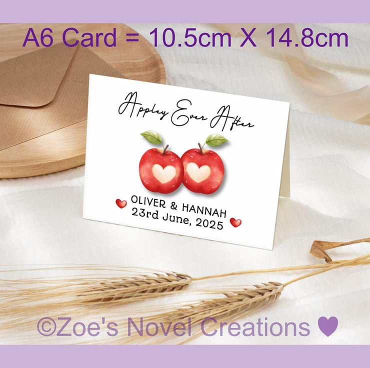 Apples Wedding Card, personalised - A6 size 10.5cm X 14.8cm