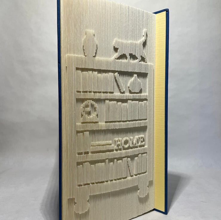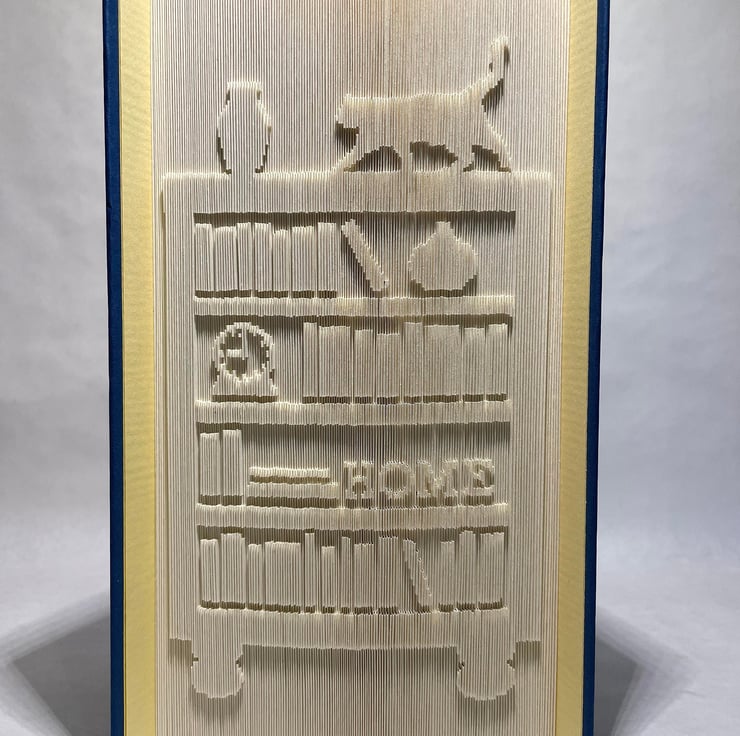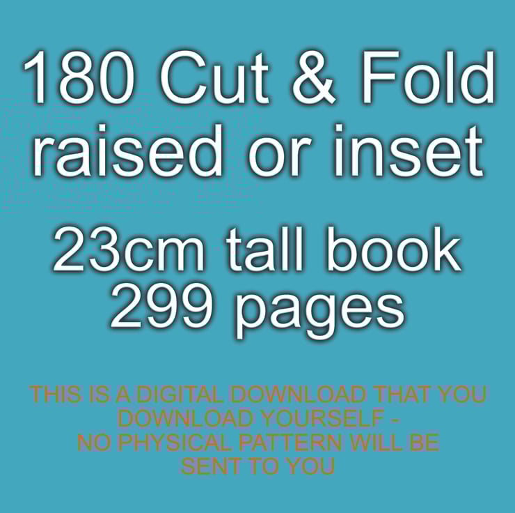 This listing is for a book folding pattern that enables you to create a book with the design pictured. Last image shows the pattern folded as an inset. A free written tutorial is included to guide you through the folding process.