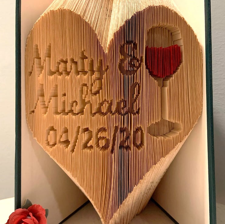Wine Glass Heart (your details) CUT & FOLD Book Folding Pattern - EMAILED PDF