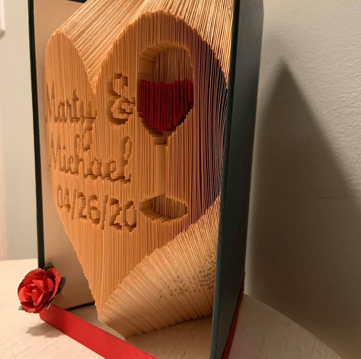 This listing is for a CUSTOM book folding pattern that enables you to create a book with the design pictured. Pictures show examples. A free written tutorial is included to guide you through the folding process.