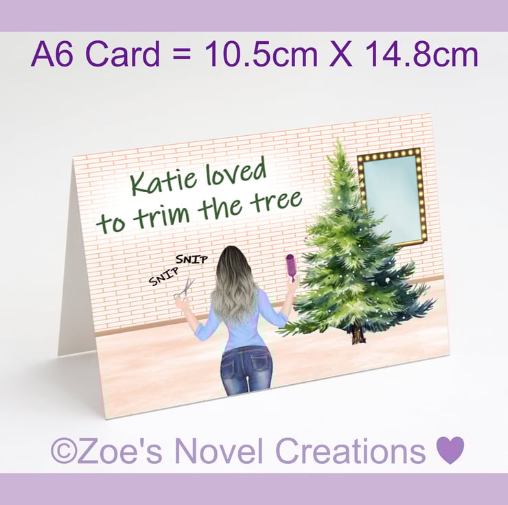 Trim the Tree Christmas Card, Personalised - A6 size 10.5cm X 14.8cm