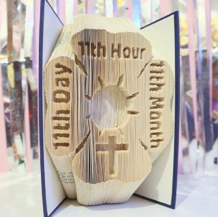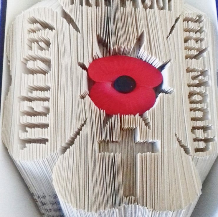 This listing is for a book folding pattern that enables you to create a book with the design pictured. The centre of the poppy is just big enough to add a small photo, or even a poppy. A free written tutorial is included to guide you through the folding process.