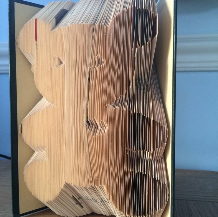 This listing is for a book folding pattern that enables you to create a book with the design pictured. A free written tutorial is included to guide you through the folding process.