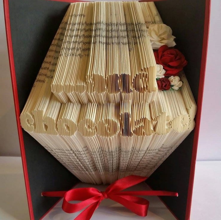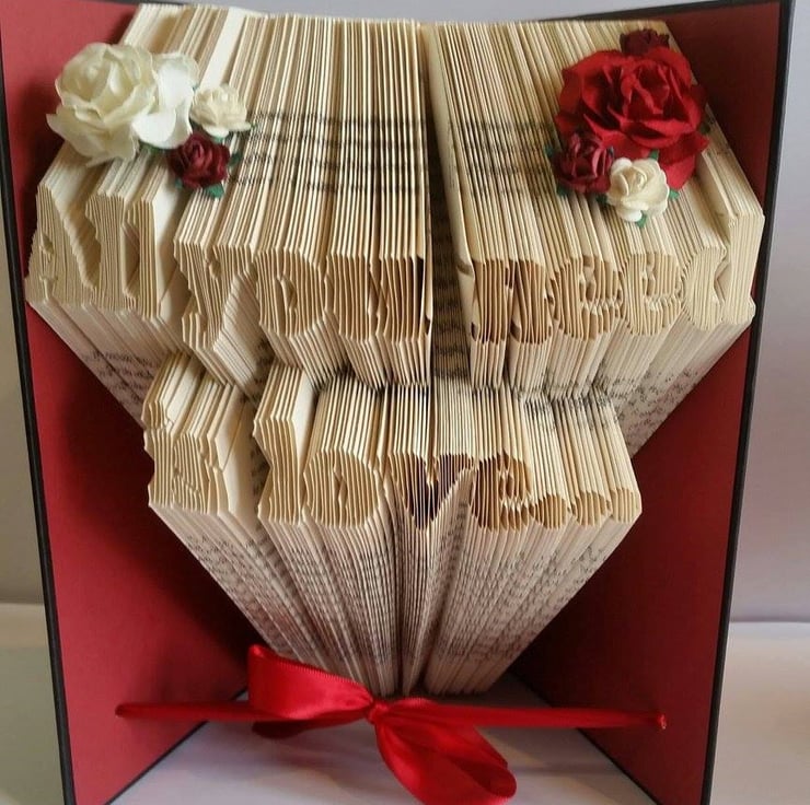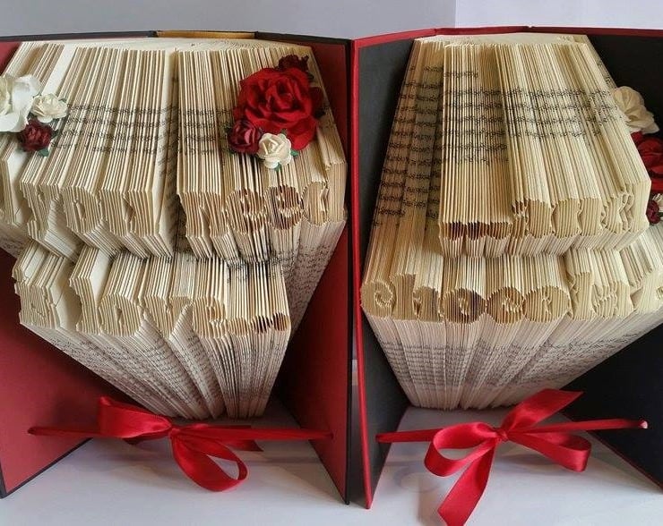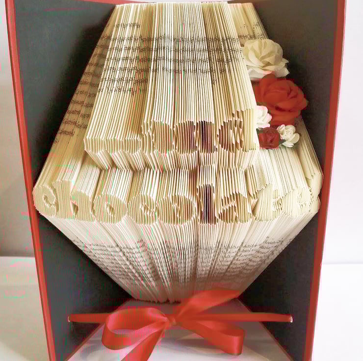 This listing is for a book folding pattern that enables you to create a book with the design pictured. You will get 2 patterns, one for the All you need is love..... and another for the ...and chocolate. A free written tutorial is included to guide you through the folding process.