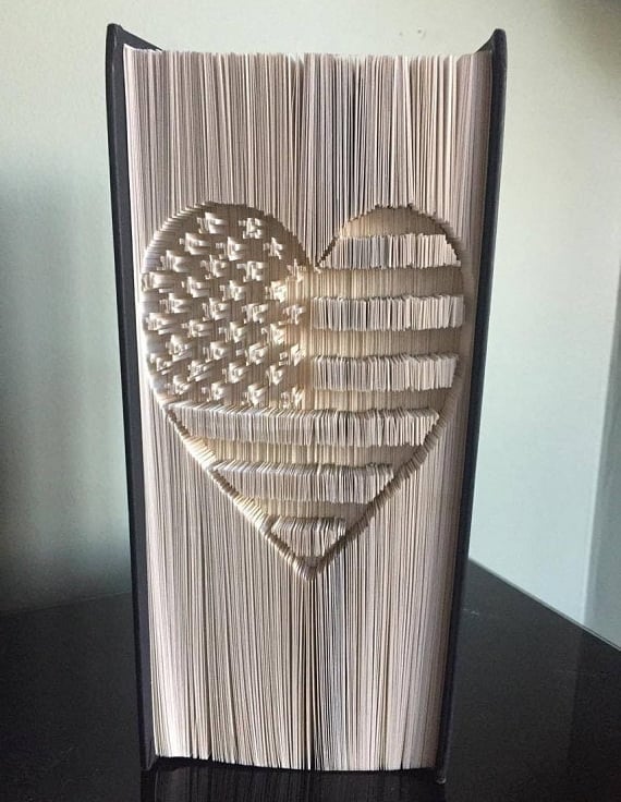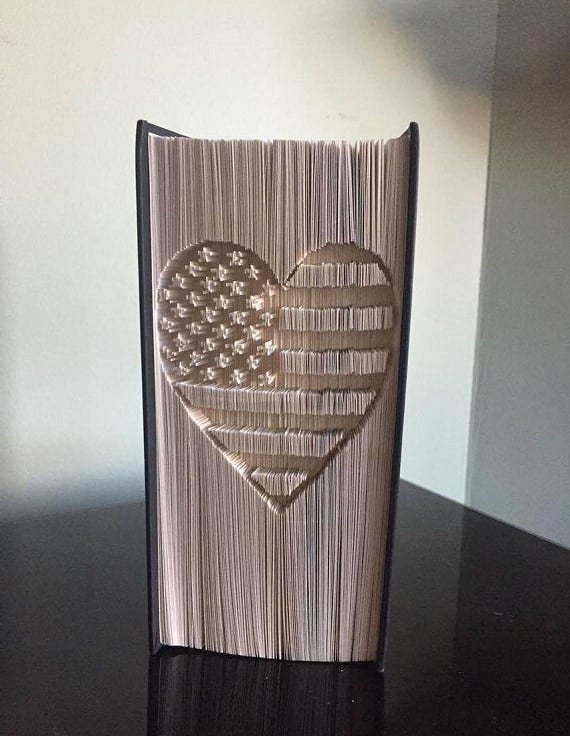 Stars and Stripes Heart CUT & FOLD Book Folding Pattern - EMAILED PDF PATTERN