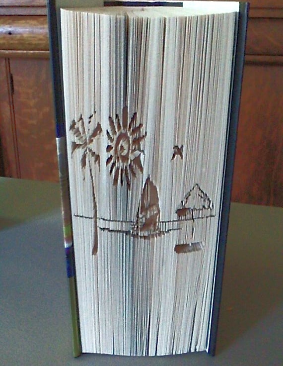 This listing is for a book folding pattern that enables you to create a book with the design pictured. A free written tutorial is included to guide you through the folding process.