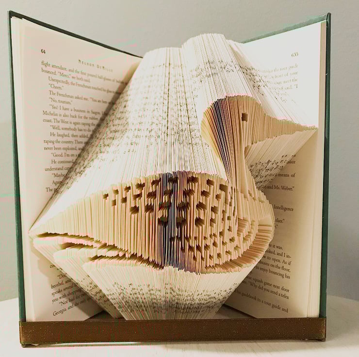 This listing is for a book folding pattern that enables you to create a book with the design pictured. A free written tutorial is included to guide you through the folding process.