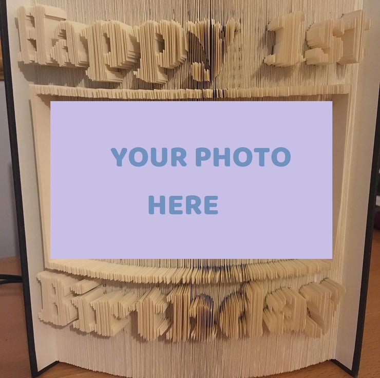 This listing is for a book folding pattern that enables you to create a book with the design pictured. The space for the photo is approx. 130mm X 95mm (depending of thickness of pages). This must be folded as an raised fold (outie) so that the space for the photo is inset. A free written tutorial is included to guide you through the folding process.