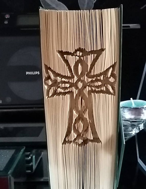 This listing is for a book folding pattern that enables you to create a book with the design pictured. Can be folded as an inset, a raised or a combi as shown in the images. A free written tutorial is included to guide you through the folding process.