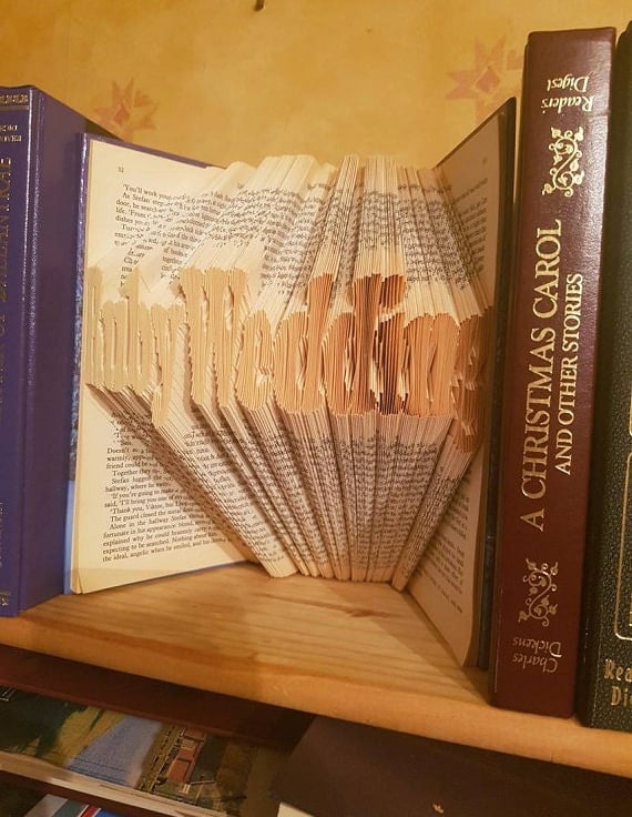 This listing is for a book folding pattern that enables you to create a book with the design pictured. A free written tutorial is included to guide you through the folding process.
