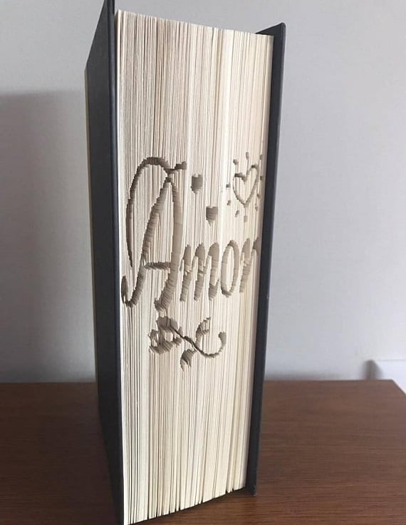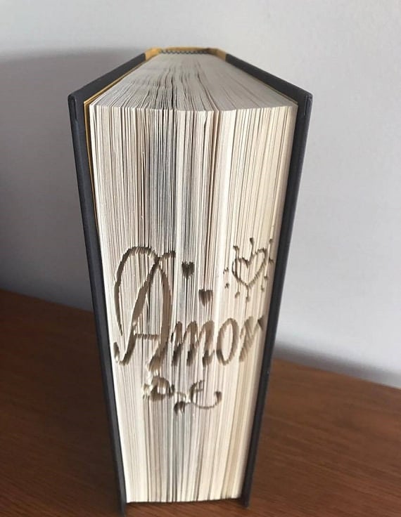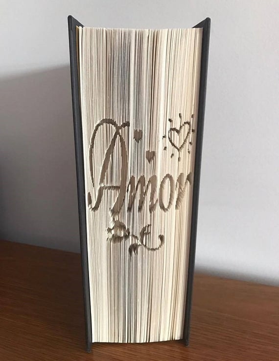 This listing is for a book folding pattern that enables you to create a book with the design pictured. A free written tutorial is included to guide you through the folding process.