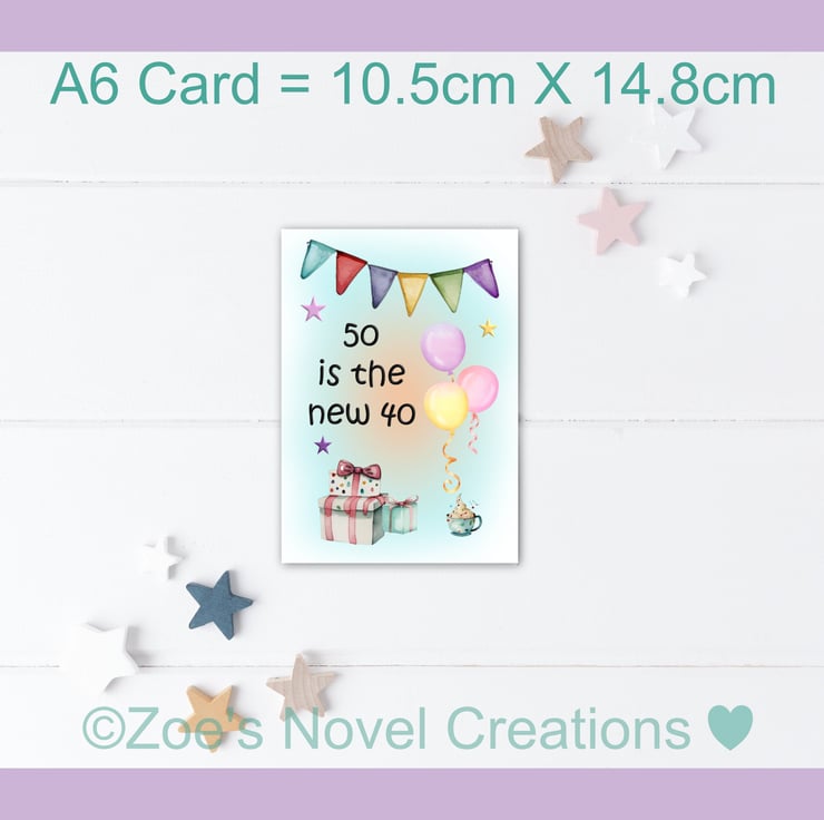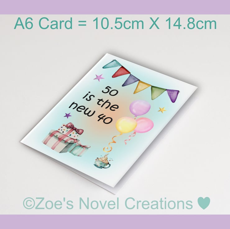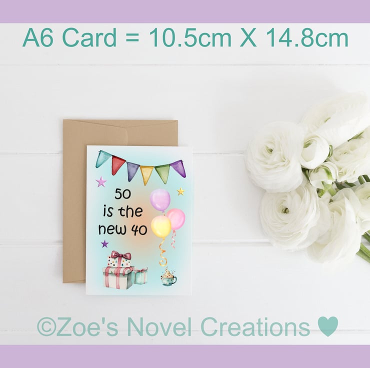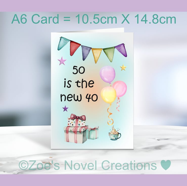50 is the new 40 A6 Greetings Card, A6 10.5cm x 14.8cm