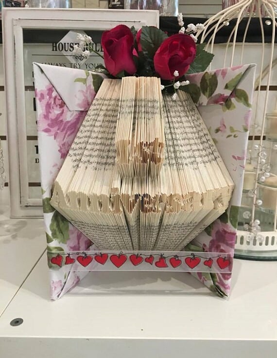 This listing is for a book folding pattern that enables you to create a book with the design pictured. A free written tutorial is included to guide you through the folding process.