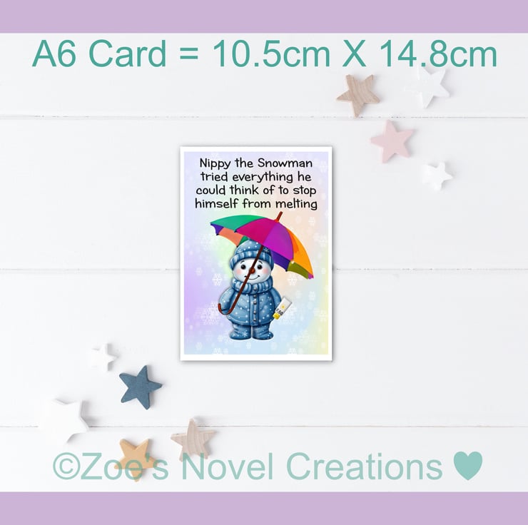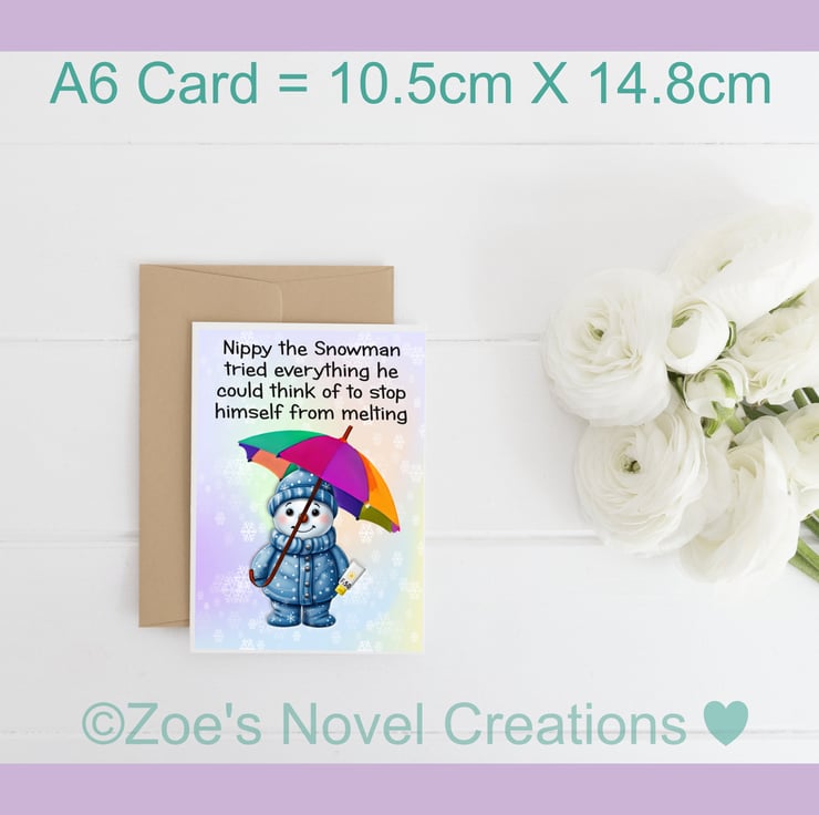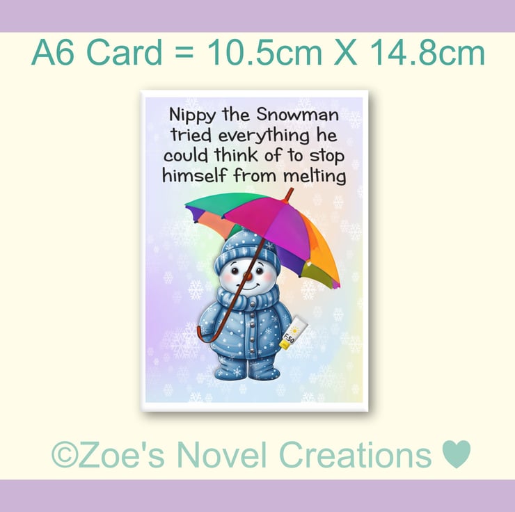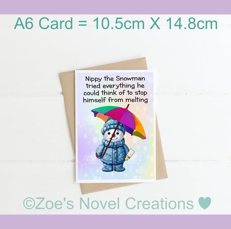 Sunblock Snowman, Christmas Card, A6 10.5cm x 14.8cm