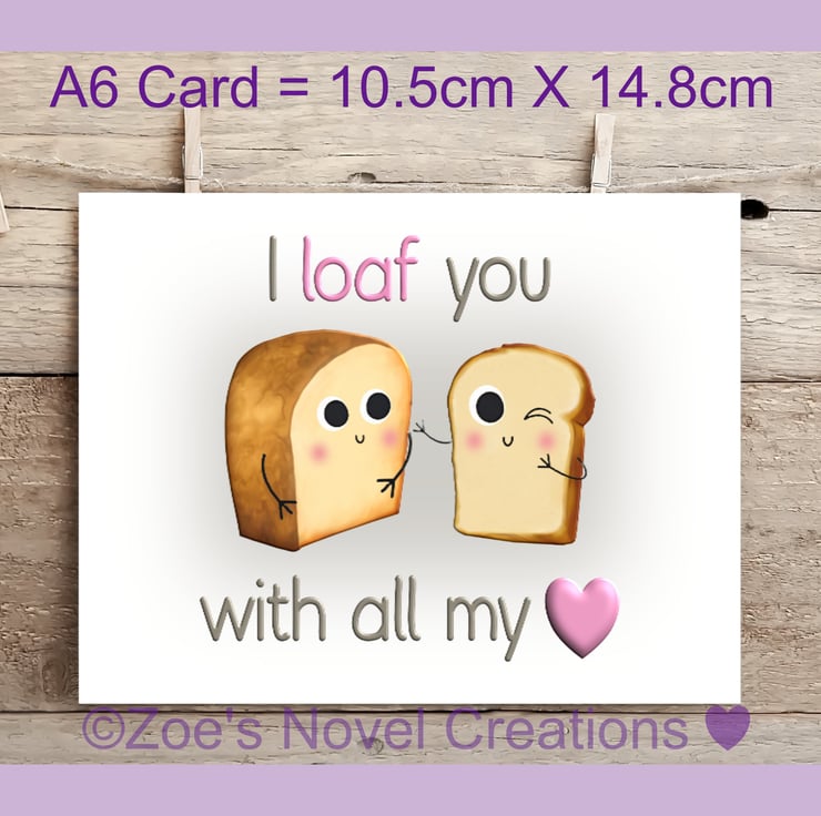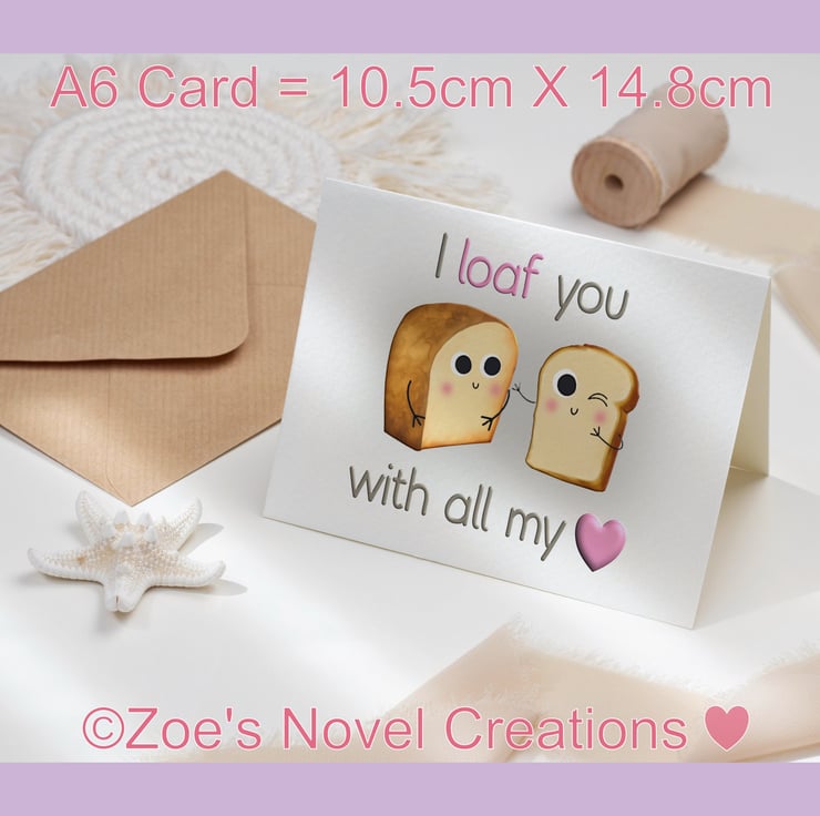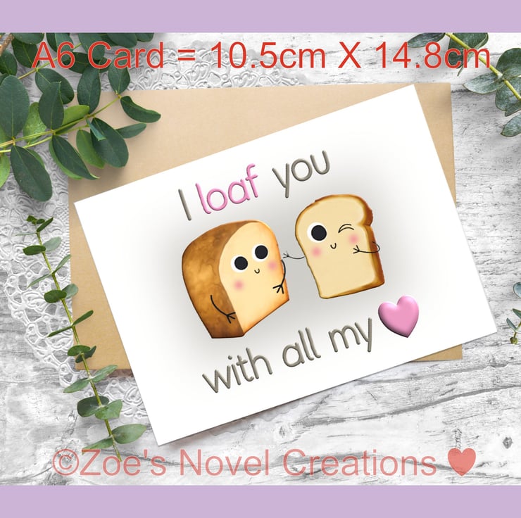 Valentine's Day Card, I loaf you, A6 10.5cm x 14.8cm