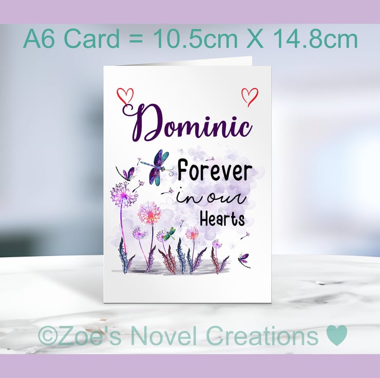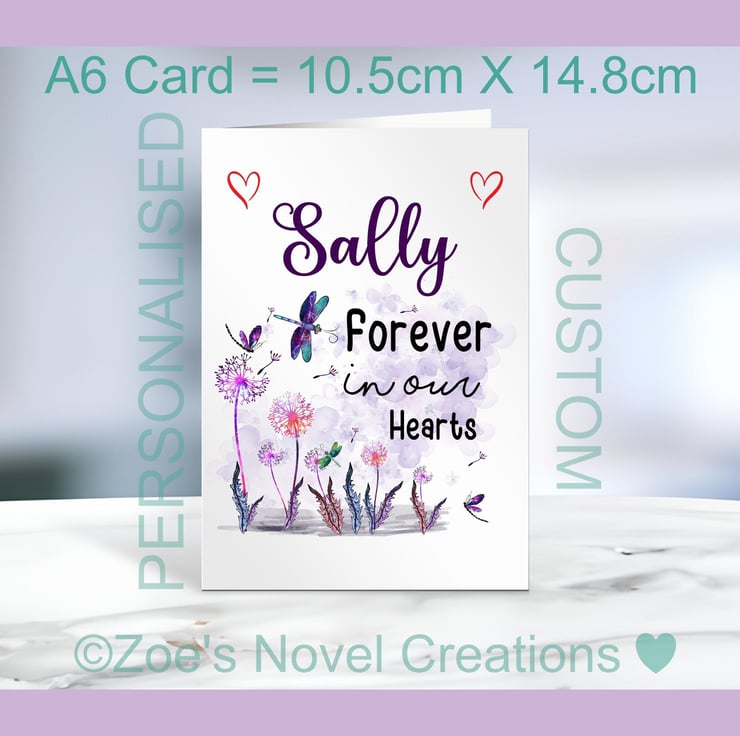 Bereavement Card, portrait card, personalised A6 10.5cm x 14.8cm
