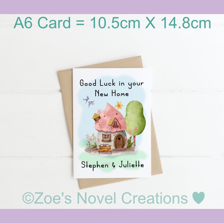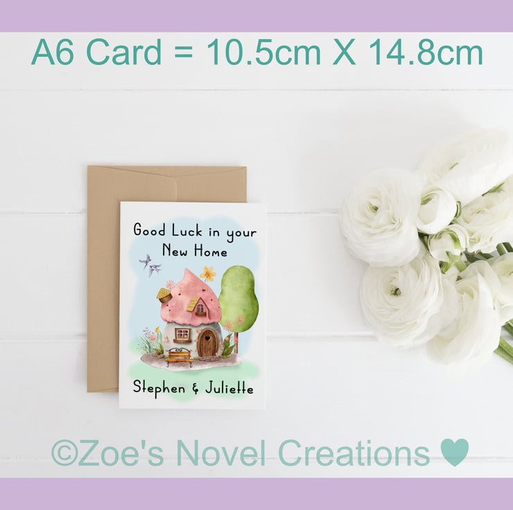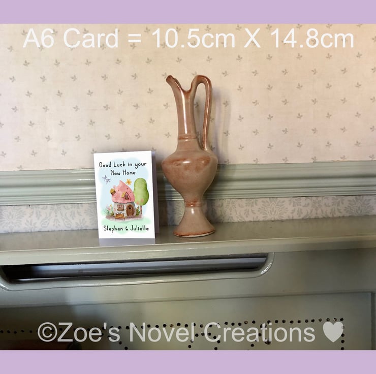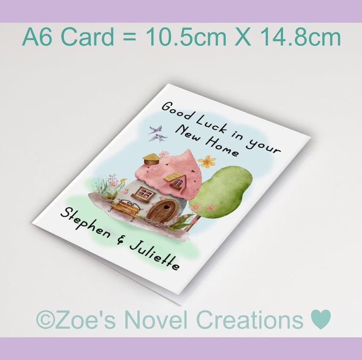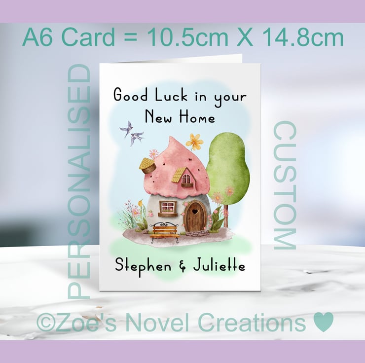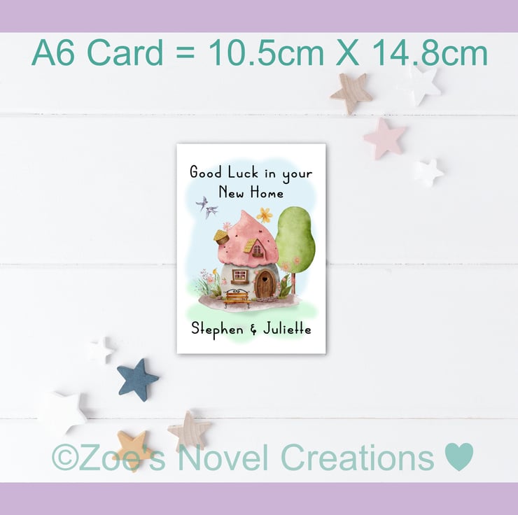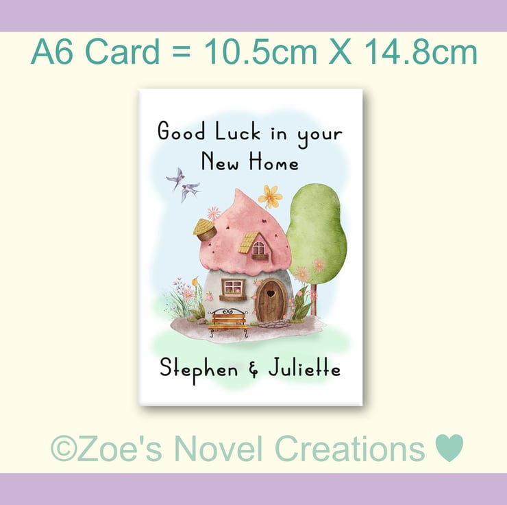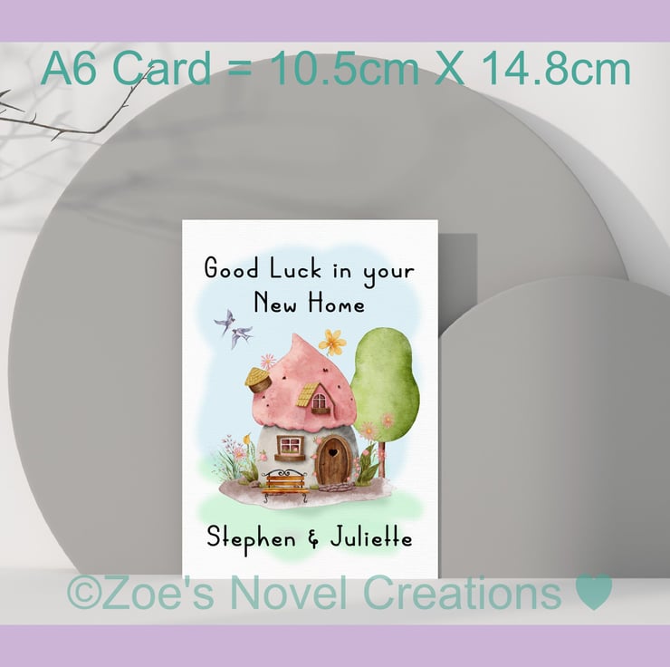 New Home 2 Greetings Card, portrait card, personalised A6 10.5cm x 14.8cm