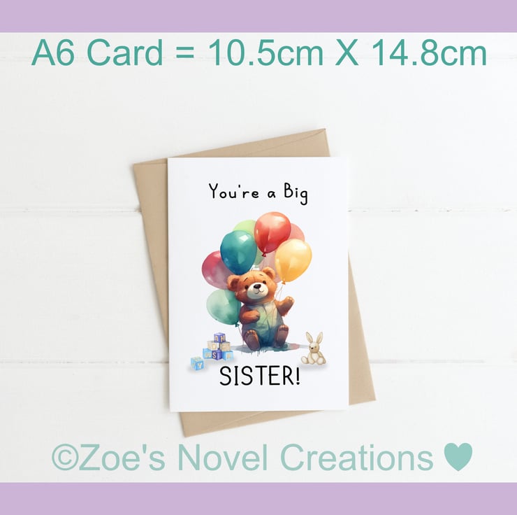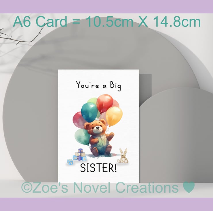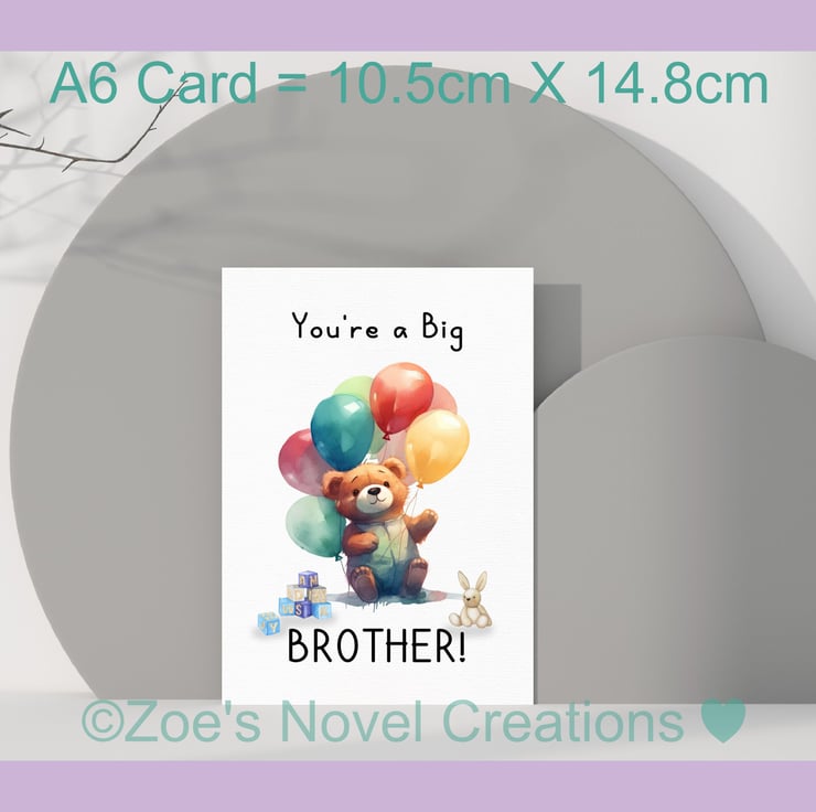 You're a Big Brother or Sister, Teddy Bear Greetings Card, A6 10.5cm x 14.8cm