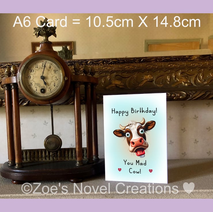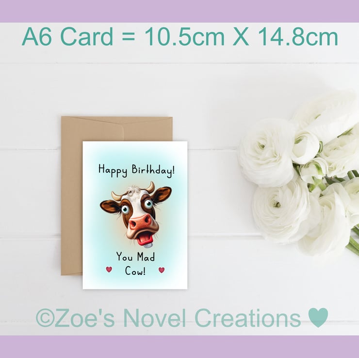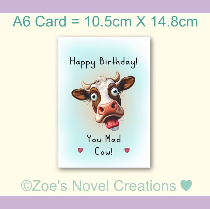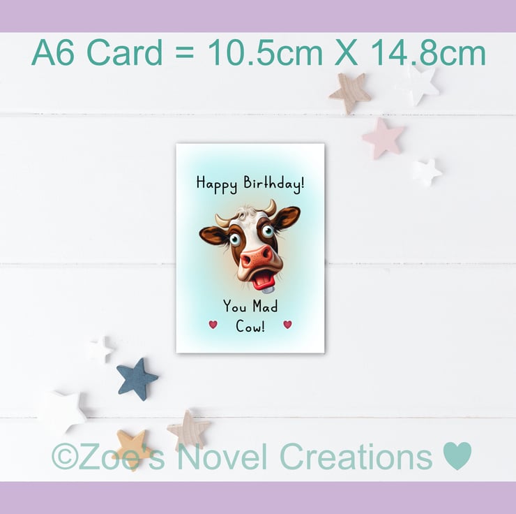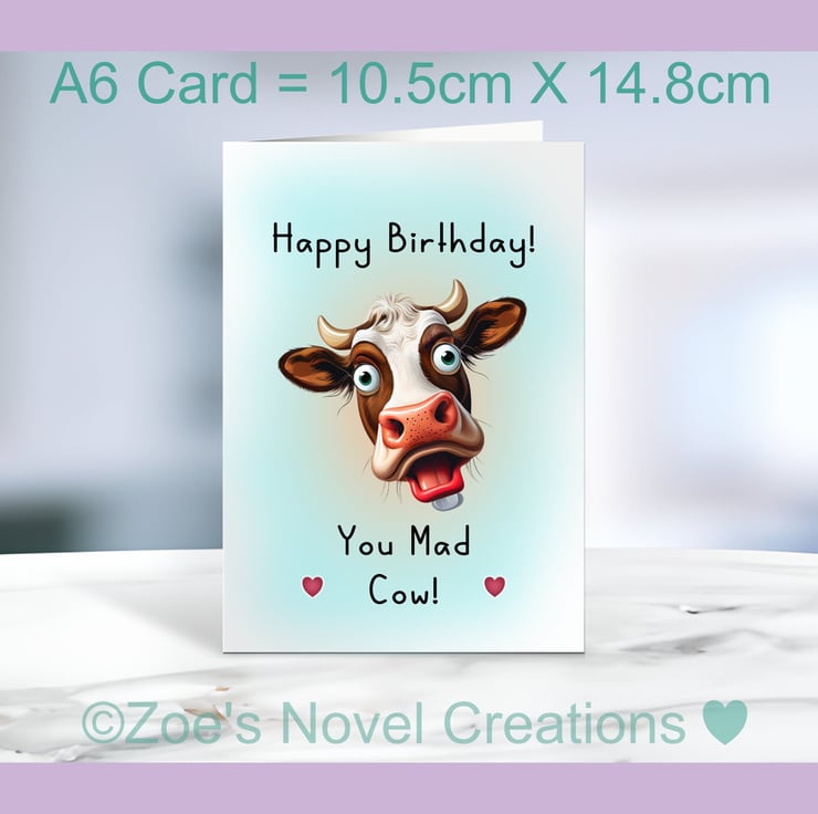 Happy Birthday you Mad Cow Greetings Card, A6 10.5cm x 14.8cm