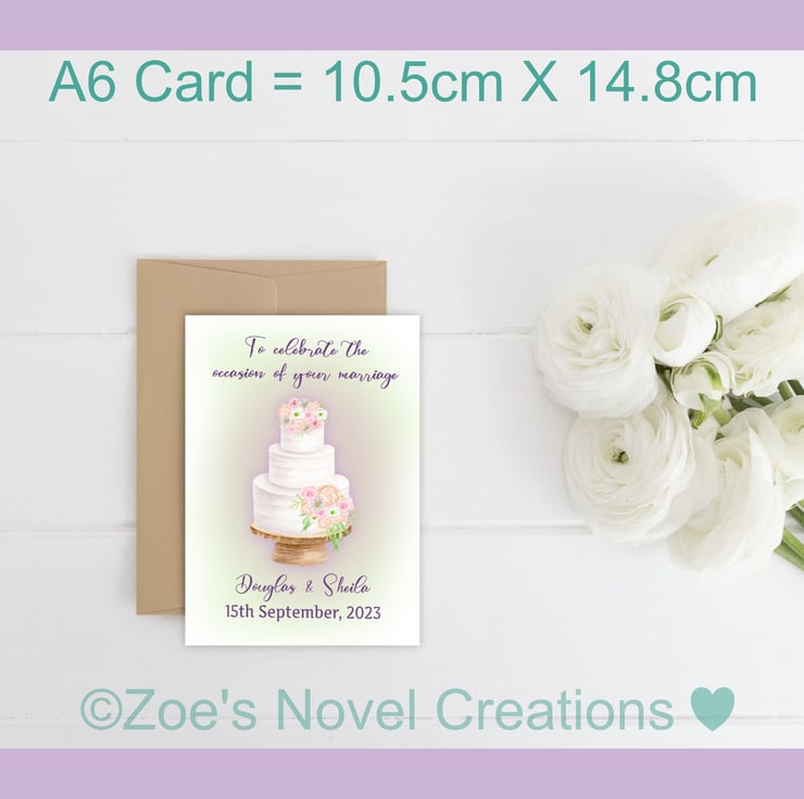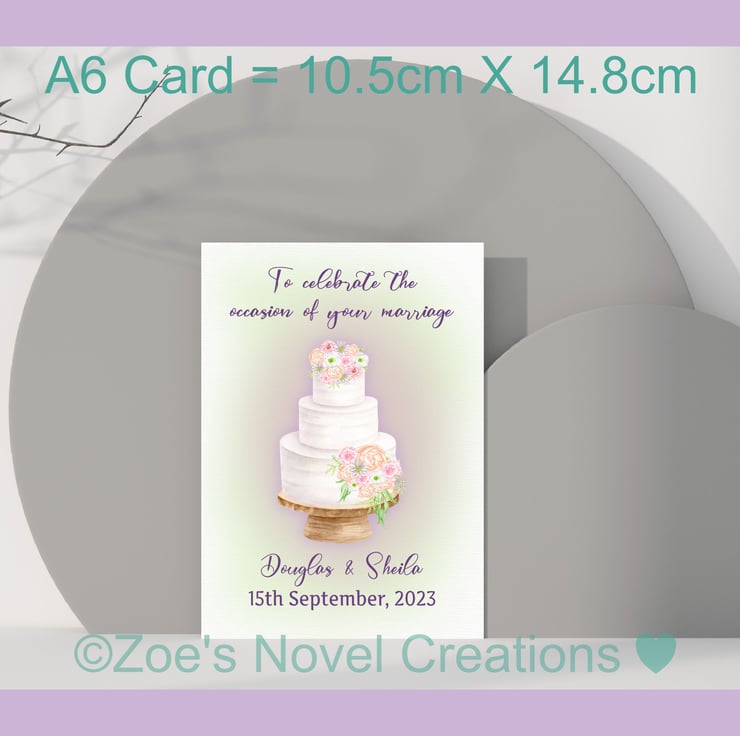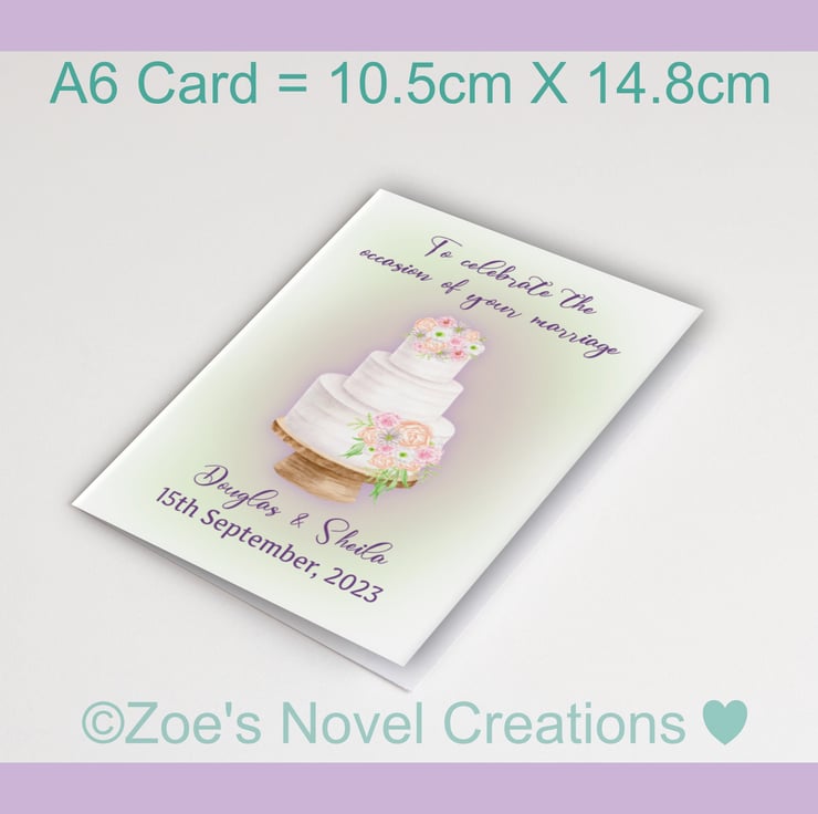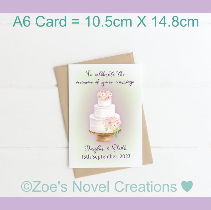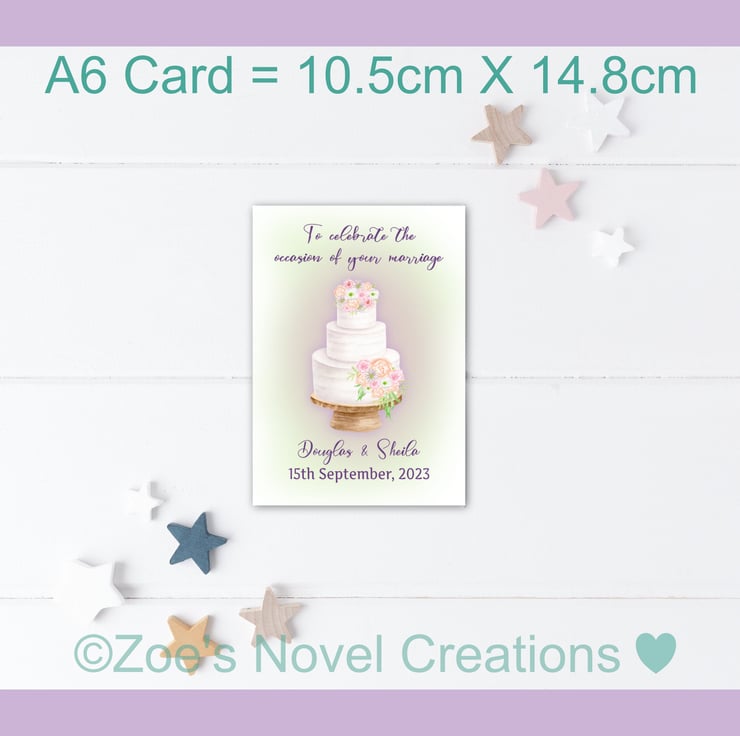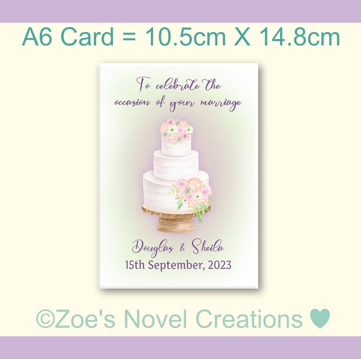 Wedding Cake Greetings Card, personalised, A6 10.5cm x 14.8cm