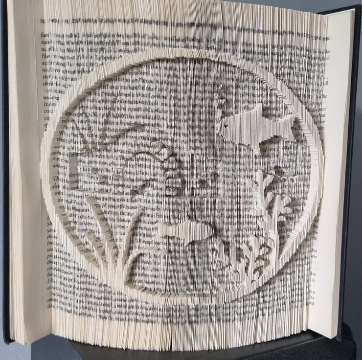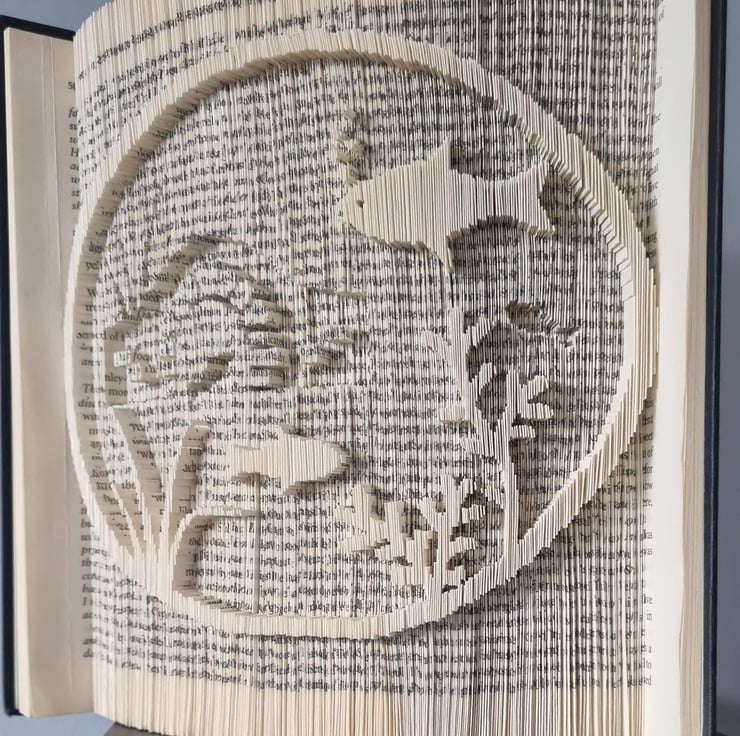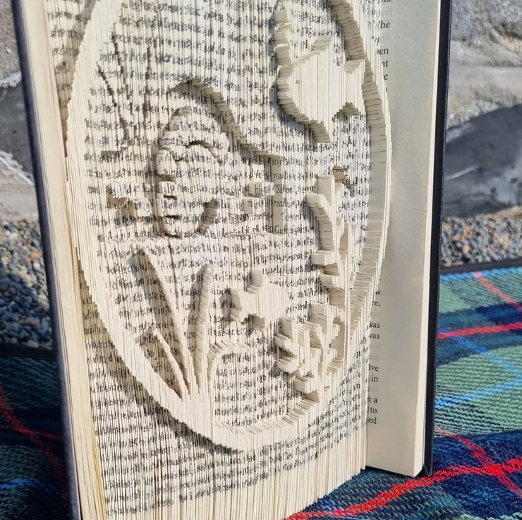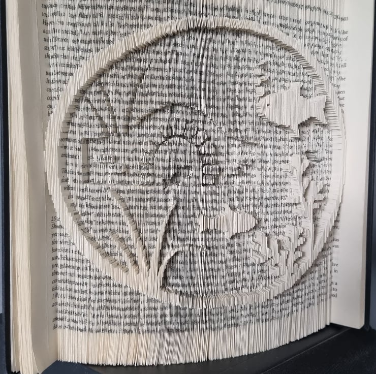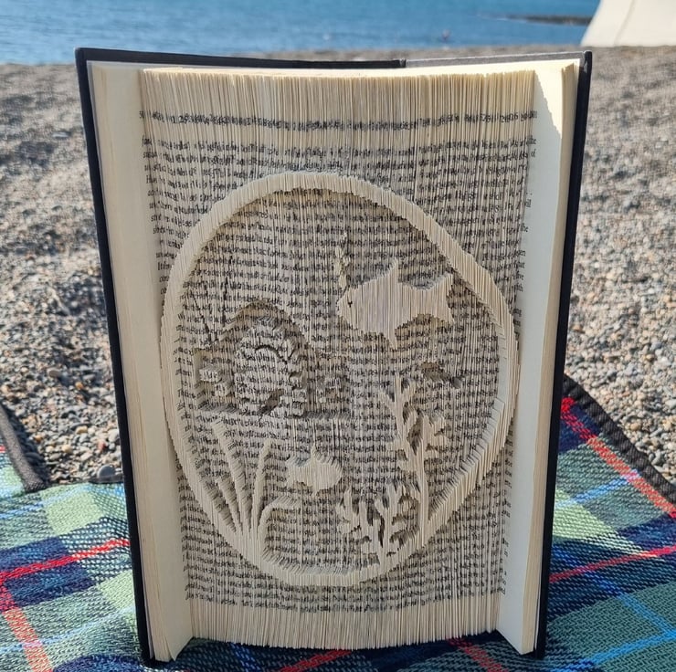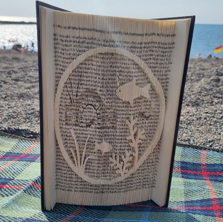 This listing is for a book folding pattern that enables you to create a book with the design pictured. The photos show the pattern folded as a 180 multi-layer, and can be folded as a regular 180. A free written tutorial is included to guide you through the folding process.
